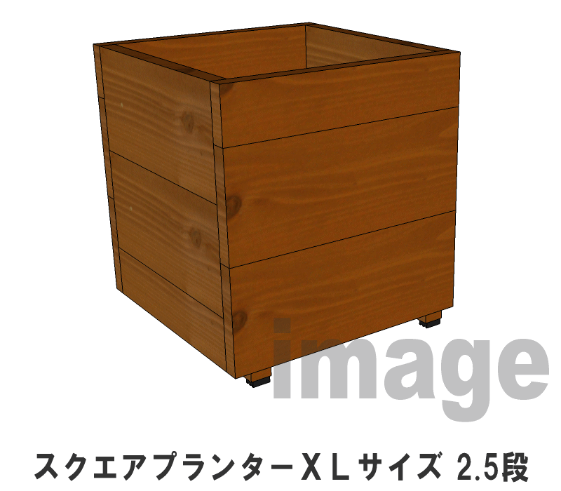 トップページ > ガーデニング > スクエアプランター > XLサイズ(2.5段) 商品限定で、特別色(WB、GG、CB)も 標準色(MB、DB、NL)と同価格キャンペーン実施中! 組立 不要(完成品でお届けします) 樹種 ◇国産杉(宮崎産)>>樹種について 色 >> 色見本請求はこちら(無料サービス)ゴム脚について【 ご注意ください 】この製品には、 下部にゴム脚がついています。ゴム脚と接した部分が色移りする恐れがありますので、屋内でのご利用の際には、ゴム脚の下に家具用のクッション材等を貼ってご利用ください。 プランターカバーご利用時注意 プランターカバーとしてご利用の場合、カバーしたいプランターの 直径の最大部分 を計測し、それにあわせたサイズの商品をお選びください。 >>拡大画像で見る 備考 直接土を入れてご使用頂いても大丈夫です。>>関連Q&A >>スクエアプランターサイズ一覧表はこちら