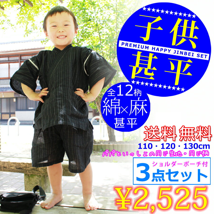 甚平は選べる12柄。 普段のリラックスウェア・ルームウェア・ホームウェアにピッタリ! 肌質感も気持ちいい綿×麻素材で夏も涼しく過ごしやすい! ■■■ 子供甚平3点セット ■■■ ■甚平素材(綿85%、麻15%) 選べる12柄となっております。親子もしくはおじいちゃんと孫、3世代に渡って同じ柄を着こなしましょう。 110cm用、120cm用、130cm用の3種類からお選び頂けます。 【110cm用】上着身丈:約48cm、上着裄丈:約36cm、ズボン丈:約35cm 【120cm用】上着身丈:約50cm、上着裄丈:約38cm、ズボン丈:約39cm 【130cm用】上着身丈:約52cm、上着裄丈:約40cm、ズボン丈:約43cm ■履き物(サイズのみお選び頂けます。柄は弊店スタッフのお任せとなります。) たたみ風草履:約18cm、19.5cm、21cmの3種類 ■刺繍入りポーチ 当店通常販売価格1,000円の刺繍入りショルダーバッグが付いた3点セット!! (刺繍のデザインは弊店スタッフのお任せとなります。) ■■■ 子供だって涼しく粋に過ごしたい ■■■ 簡単に着付けができる子供甚平2点セット。 夏の暑い日を快適に過ごせる子供甚平。外で遊ぶのにも最適です。 お父さんと子供、おじいちゃんと孫、おじいちゃん・お父さん・子供と3世代で着こなしてもいいんじゃないでしょうか♪ これだけ付いて消費税込みの驚愕の価格! ■■■ バリエーションが豊富! ■■■ 柄は12種類の中からお選び頂けます。 【柄に関しまして】 柄の生地は1反から余すことなく使用しているため、お買い上げ頂きました商品によっては画像と同様の柄模様が出るとは限りません。 柄の模様の位置が画像とは違う場合がございますことをご了承頂きます様お願いいたします。 【画像に関しまして】 可能な限り実物に近い色を出すように試みておりますが、ご使用のモニターなどによっては実商品とお色等が違う場合がございます。 ご了承いただきます様お願いいたします。 甚平/6月19日/甚兵衛/じんべえ/メンズ/男/オトコ/パパ/プレゼント/ギフト/贈リ物/ファッション/ランキング/部屋着/ルームウェア/ホームウェア/リラックスウェア/セット/綿麻甚平/綿×麻/麻混/雪駄/夏/アパレル/カラフル/男性用/6/17/6.17 メンズ/花火/甚平/祭りあす楽対応/節電/男の子/キッズ/ショルダーポーチ/ショルダーバッグ/草履