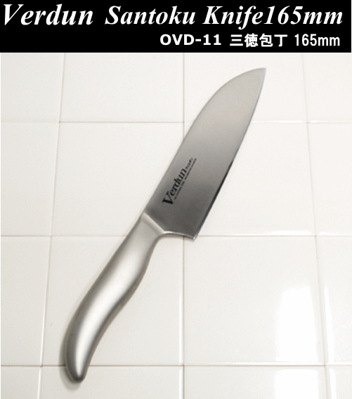 只今再入荷待ちです。次回5月26日より発送になります。ご注文は受け付けていますのでよろしくお願いいたします。 この商品はゆうパケット便に変更で、1丁 送料無料でお送りできます。買い物かごに入れた後、ゆうパケット便に変更をお願いします。 他品と同梱や代引は宅配料金540円になります。 発送メールがアドレス違い等でエラーとなった場合は発送できませんので、必ずメールが受け取れるようにお願い致します。 ご家庭で一番使われる形・サイズの包丁です。 幅広で、キャベツ・大根などまっすぐに切れます。 牛刀型より2cm短く扱いやすいです。 ■手研ぎ本刃付きで、素晴らしい切れ味です。■両刃ですので、左利きの方も使えます。■オールステンレス、ハンドル一体型で汚れが付かず清潔にお使いいただけます。■切れ味のメンテナンス 切れ味が落ちたら、市販の回転式シャープナーを使って、手軽に刃先を研いで切れ味が回復します。おすすめのシャープナーはこちらから <商品仕様> ■用 途:万能型で、魚・肉・野菜に使えます。■全 長:292mm、■刃渡り:165mm■材 質:刀身/モリブデン鋼、 ハンドル/18-8ステンレス■生産国:日本 ■家庭用ナイフ・家庭用包丁■他のヴェルダン包丁はこちらからどうぞ■ヴェルダン 三徳包丁 刃渡り165mm やわらかいトマトもキレイにカット! 品質・機能ともに、最先端のナイフ。 鋭い切れ味と、手に馴染みやすく、滑りにくいハンドルの形がおすすめポイント! いやな臭いがつかず、いつまでも清潔にお使いいただけます♪ ・・・おすすめPoint ■シャープな切れ味! 切れ味、刃持ちの良いモリブデン鋼を使用し、手仕上の本研刃を付けてあるのですばらしい切れ味が持続します。プロ仕様の切れ味をお楽しみ下さい。 ■清潔なハンドル! いままでの包丁のハンドルは、木製がほとんどでした。長年使うと、いやな臭いが気になってきました。これならそんな心配がありません。雑菌が付きにくく、乾燥しやすいので、清潔さを保てます。 ■握りやすいハンドル! ある程度の力を入れやすい適度な太さで、中空構造で軽く、扱いやすくできています。 ■お手入れ方法 パッケージに食器洗い機OKと表示してありますが、できれば食器洗い機での洗浄は避けてください! 食器洗い機の洗剤は、アルカリ成分の多いものもあり、刀身が黒く変色する場合もありますので、長くお使いいただく為に、手洗いをおすすめします。 洗う際は中性洗剤をつけ、スポンジで軽く洗うだけで充分です。洗い終わったら、乾いた布で水分をふきとり、乾いてからしまってください。 ■切れ味のメンテナンス 市販の回転式シャープナーを使って、手軽に刃先を研いで切れ味が回復します。おすすめのシャープナーはこちらから刃こぼれした場合、ステンレス用のセラミック砥石で研いでください。刃先が元通りに回復します。おすすめの砥石はこちらから ■ヴェルダンナイフのアイテム ■三徳包丁 ■牛刀包丁■ぺティ ■ミドル三徳 ■出刃包丁 ■柳刃包丁 ■パンスライサー ■ヴェルダン包丁、他のアイテムはこちらからどうぞ。 ↑↑↑2016.9.7 最新ランキング入賞!ご愛顧いただき、たいへんありがとうございました!!