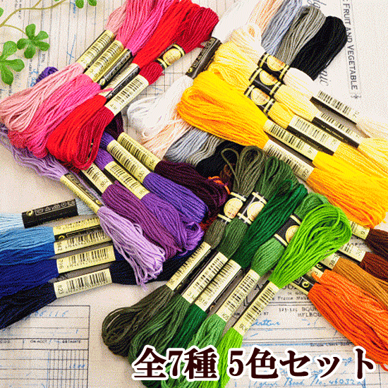 【1】ゆうパケット(日本郵政) 194円全国一律 ポストへのお届けです。(盗難、未投函などでの補償なし。日時指定不可。)■厚み3cm、3辺合計60cm以内まで↑規定サイズを超える場合は、宅配便に変更させていただきます。同時に送料も変更させていただきます。■紛失、破損、盗難などのトラブルが生じた場合 当店では一切補償はできません。---------------------------------【2】宅配便 560円 宅配便は早くてより安心。5,000円(税込)以上お買い上げで、送料無料♪↓ ↓ ↓※ご希望の配送方法を必ずご指定下さい ※特に!<ゆうパケット送料無料>の商品をご注文の場合は、ゆうパケットをご選択下さい。■ロット(生産単位)が異なると、同じ品番でもカラー、サイズ、品質が微妙に変わってしまう場合がございます。同じ種類、材料、染料を用いていても製造過程において完璧に同じものを再現することが難しくこのような現象はどの商品にも見られます。ロット違いによる商品の交換はお断りしております。ご了承ください。■エコ、個人情報保護のため、明細書を同封しておりません。■「御注文確定メール」が商品明細書 の代わりとなります。商品到着まで必ず保存していただきますよう お願いいたします。当店からのメールを必ず受信していただけますようアドレスを「ドメイン指定受信解除」していただきますようお願いいたします。(my-mama@d5.dion.ne.jp & auc-my-mama@shop.rakuten.co.jp) 尚 楽天会員様はご購入履歴からも御注文内容をご確認いただけます。とってもお得な刺繍糸のセットです。工場から直接仕入れているため、お値打ち価格。刺繍はもちろん、ミサンガにもお勧め。使い勝手が良いように、同じ系列のカラーで揃え、5束1セットです。全部で7パターンございます。 セット内容・1パック5色セット 1色8mカセ ゆうパケット可能【10セットまで可能】7パターンからお選びいただけます。その他、刺繍関係はこちらからDMCの刺繍針枠もございます★ゆうパケット18セットまで可能★