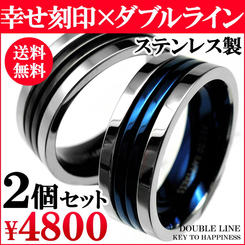 ★商品詳細★ 繋がる想い♪寄り添う2本のラインが、まるで2人の縁を象徴している様な、素敵なペアリングです♪さらに幸せを呼ぶ刻印入り♪「KEY TO HAPPINESS」意味:幸せの鍵 高級ステンレス製ペアリング!!数量限定です!!高級感あるデザインで、プレゼントにも大変喜ばれます♪ 今だけ高級ラッピングセット付きで!★2個セット価格★ステンレス製なので、つけたまま海や温泉もOK! 金属アレルギーの方も安心してご使用頂けます! ※お客様のお好みでメッセージカードや商品をお入れ頂ける様にラッピング資材は同梱になります。 ★今だけ!【安心のサイズ交換無料!】お一人様1回限り、無料でサイズ交換を承ります♪ご購入後も安心! ■サイズ■リングの幅(約):6mm ■カラー■ブラック ブルー ■おすすめコーディネート■ ノーブランドでシンプルな社会人にも人気なペア指輪です。 7号 9号 11号 13号 15号 17号 19号 21号 23号とサイズが豊富です。 クリスマスや誕生日、バレンタイン、ホワイトデー、母の日、父の日、結婚記念日のギフトにも人気があります。 ブライダルや婚約指輪としても恋愛 お守りとしても絆を深めるアクセサリーとして、 お手持ちのチェーンを通してネックレスとしてもおしゃれです。 メンズ、レディース、彼氏、彼女、男性、女性、両親 妻 夫へのプレゼントに男女兼用でお付け頂ける2本セットでオススメです。 このデザインはランキングでも人気がありますので、喜ばれること間違い無しです。 ★特典の次回使えるクーポンは、当店でのご注文が2000円(税込)以上 お買い上げの場合に50円引きのクーポンです!! ★クーポン獲得後、10日後から、ご利用可能♪有効期間は1ヶ月間となります!! ★1配送につき、クーポンは1つです!! ★レビューの書き方はコチラ!!★ ★アクセワン★